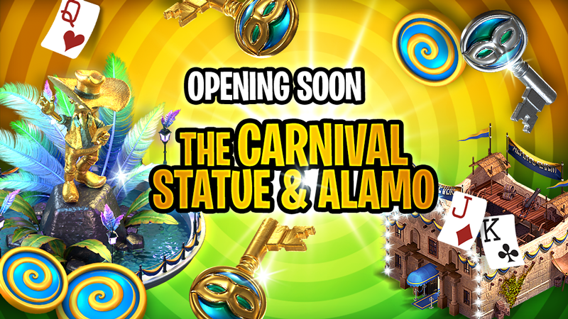 More fun is coming our way!đđ The last two Saloons of the Carnival Event will open soon! The Carnival Statue will open for EVERYONE this Thursday, March 3rd at 9AM and the Carnival Alamo will open on Sunday, March 6th at 9AM đ . Show your best game and start collecting Spins and Entry Keys!đī¸đ