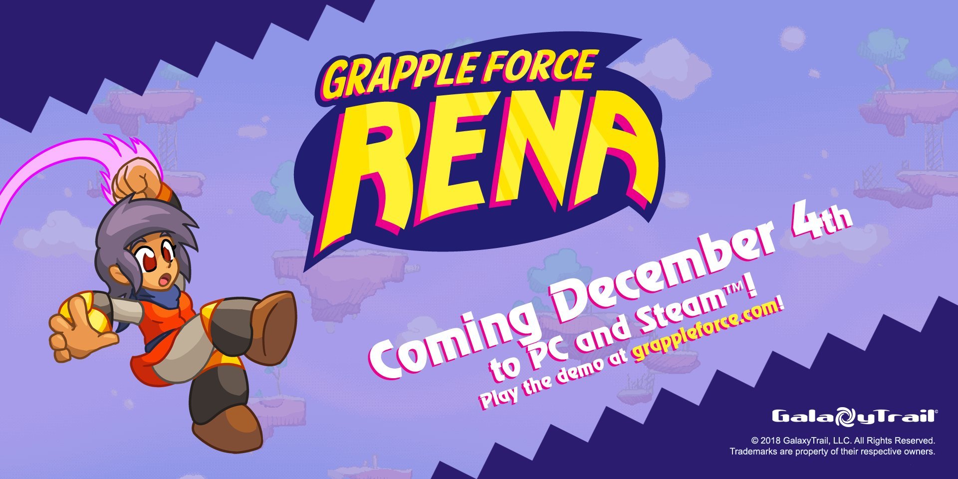 As of right now, you'll be able to play a demo of the game, right here in Steam! Featuring the same content as the Grapple Force Rena Web Demo, you'll get to try the game's entire first world - five courses of high-flying, foe-flinging adventure!