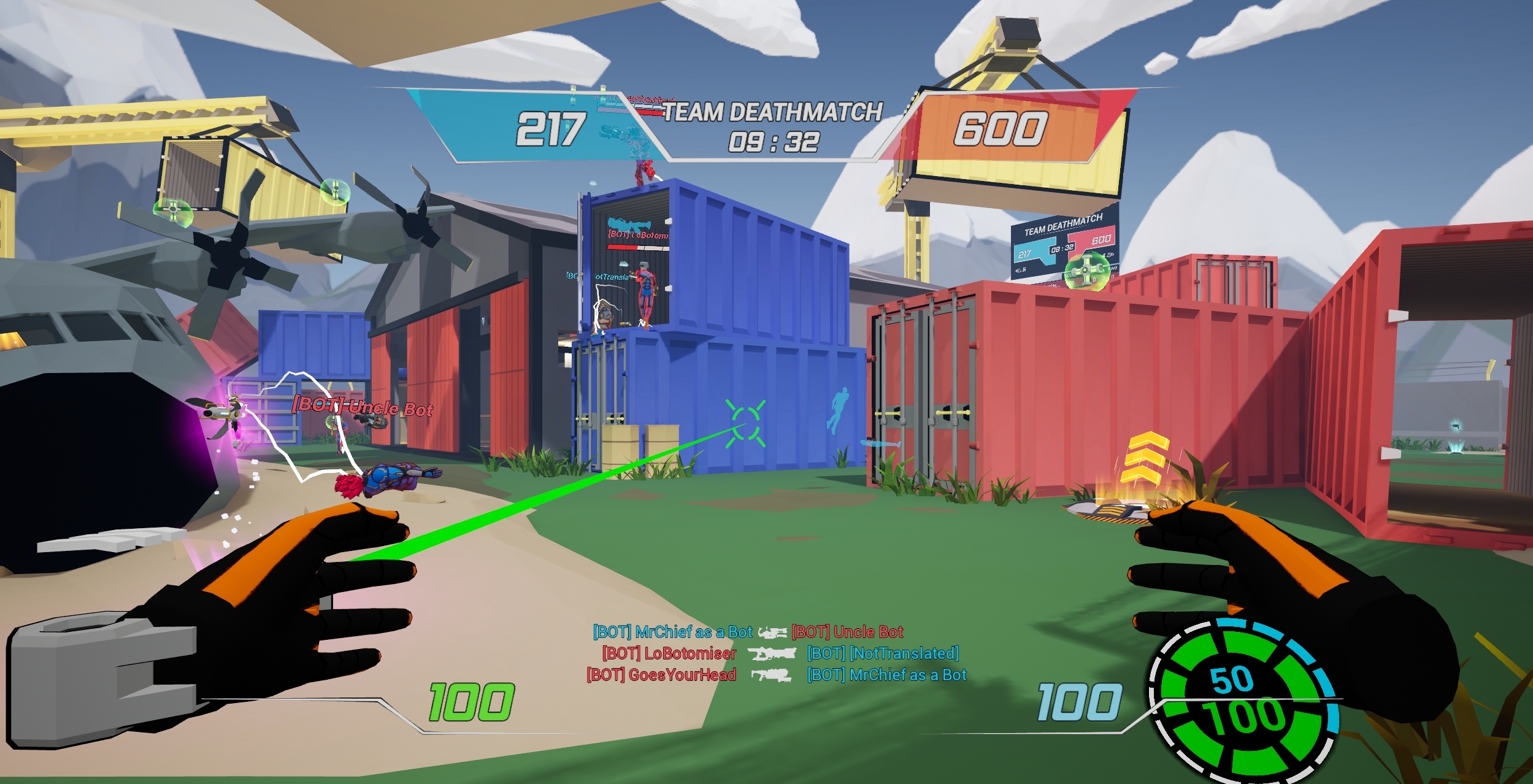 Known issues, we are already working on: - No crosshair on Judgement when joining an ongoing Instagib match and spawning with it the first time - VR hand default pose is not correct on Meta Quest versions - Foveated rendering isn't working on Meta Quest 1 which can lead to performance drops