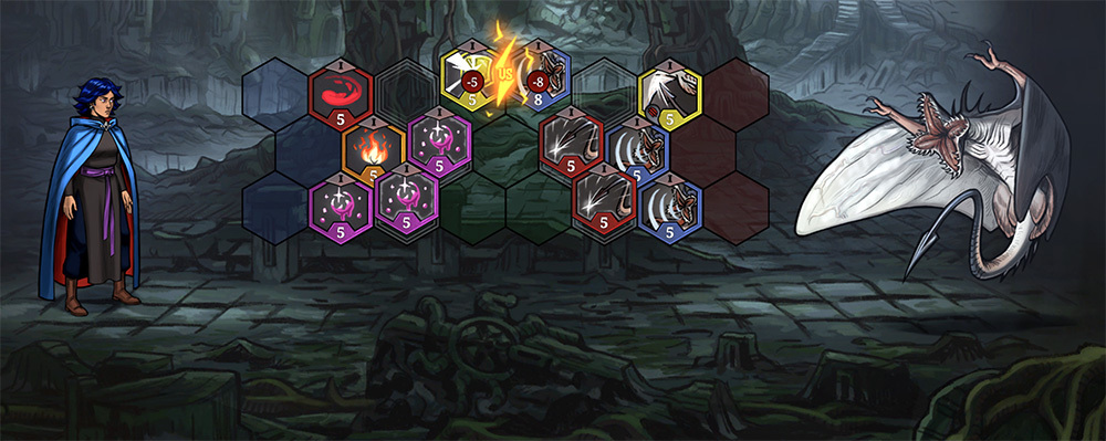 In a nutshell, this is a turn-based tactics built around a hex-based matrix with passive and active tokens, which belong to one of 8 schools, and can transform and change levels. If this sounds similar to the multi-layered mechanics of Gremlins, Inc. – you're right on spot! With Sister of a Dragon, we develop another game where multiple systems combine for a special kind of gameplay.