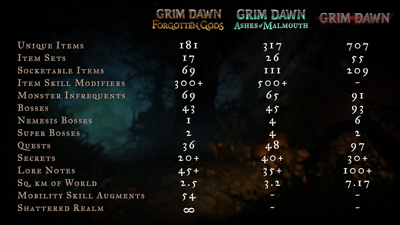 To learn more about what's coming in the expansion, stop by the [URL="http://www.grimdawn.com/guide/about/forgottenGods.php"]Game Guide[/URL]!