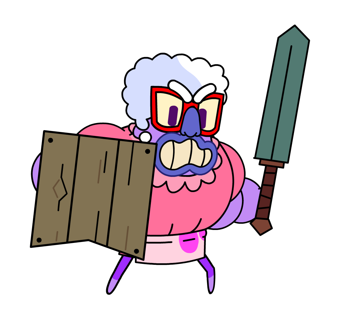 Throughout iteration, the Sword Priest didnât remain a fandom nerd. Vic changed her to an older woman of colour, because he wanted to increase representation for people often not seen in the games they play, and a new NPC in the world of Grindstone was one way to help do this. This led Vic to designing Jjertrude as the bravado-dripping elderly stonegrinder we know today, complete with her perfect pageboy haircut and her perpetually runny nose. Even Jjertrudeâs runny nose was inspired by Vicâs son. âAs creators I think we often try to sneak things into our work that inspire us in our personal lives,â Vic said. âMy son goes to daycare and has a perpetual runny nose. Thatâs where my mind was at while we were conceptualizing Jjertrude.â And thereâs nothing more charming than a confident, slightly condescending elderly woman chastising you while wiping her nose with her hand.