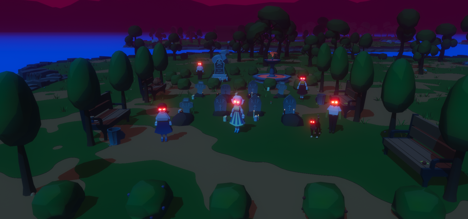 A graveyard, full of potential food and enemies.