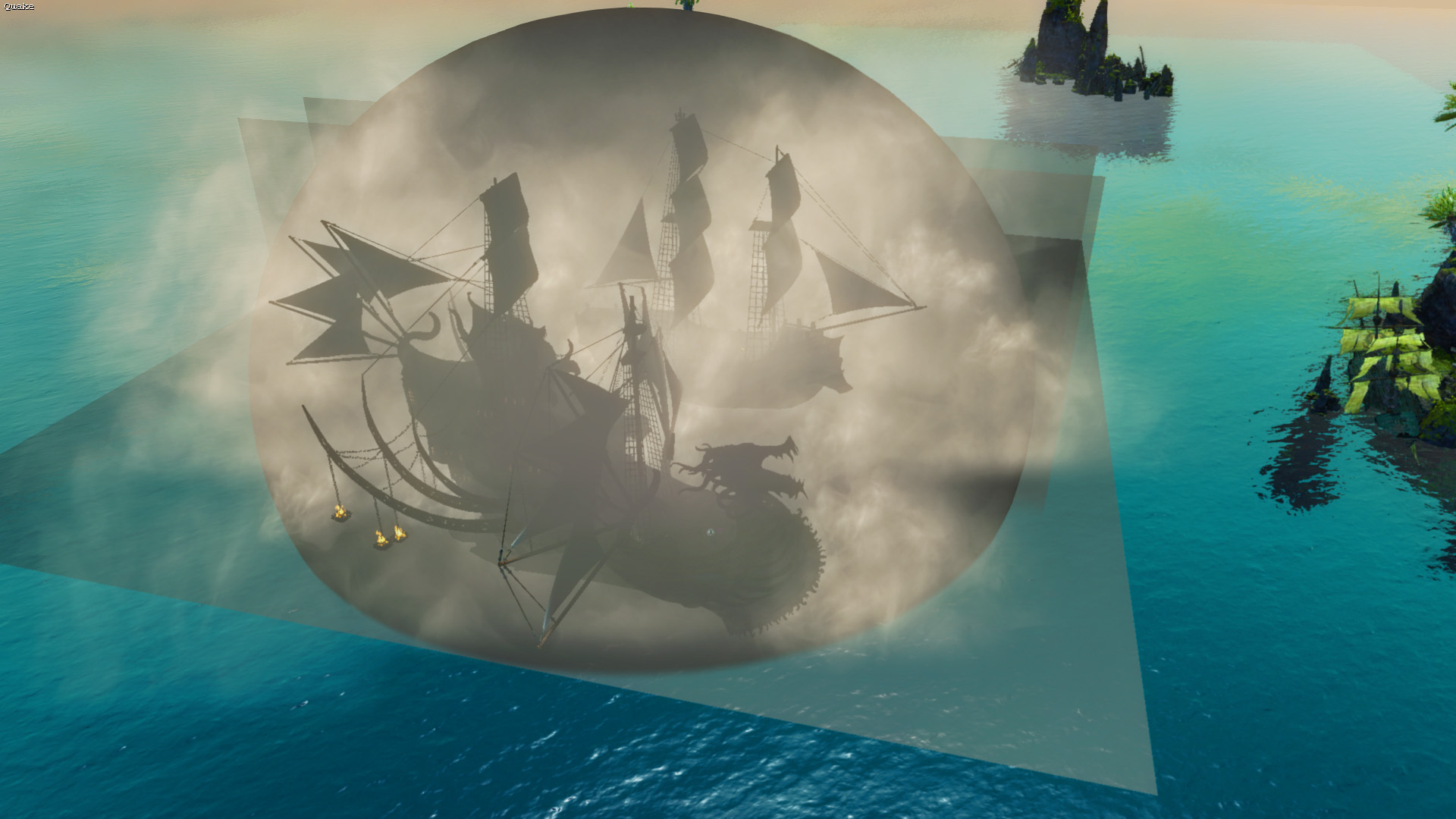 Both sections are distinct from each other from a design standpoint, too. Each has its own set of ships, NPC spawns, and other objects, but all objects for the fog section are initially invisible. Sneaky smoke and mirrors are at play in the transition from storm to fog: as the screen fades to black, all the fog objects are turned on, the player is teleported forward to the duplicate Dark Leviathan, all of the storm objects are turned off, and then the black screen fades back to gameplay.