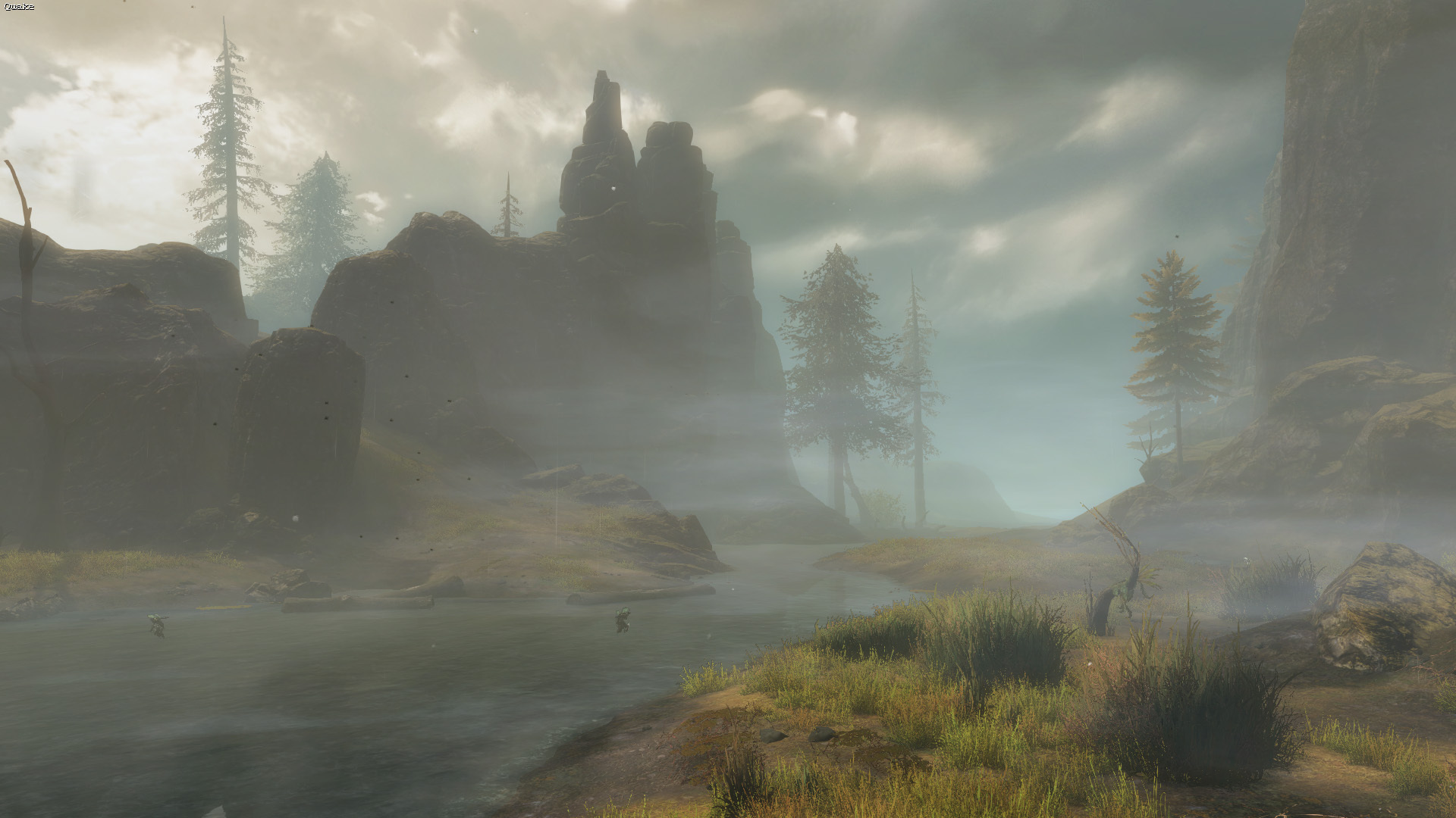 Smoke and mirrors continues to be a theme for the fog itself. Normally, a foggy environment in Guild Wars 2 is something called an "environment zone," which is an environment object set up by the map artist that can be turned on by the designer at designated times (this is how the stormy weather earlier in the instance is set up). However, fog created in this manner has limited maximum density.