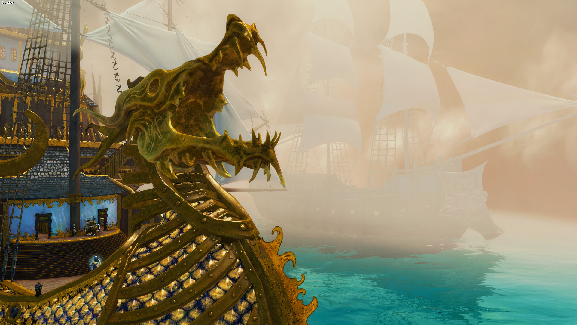 At the beginning of Guild Wars 2: Visions of Eternity, the Inquest have a head start in traveling to the mysterious island of Castora, and the commander and their allies hastily assemble a crew to set sail across the Unending Ocean aboard two ships: the Dark Leviathan and the Martingale.