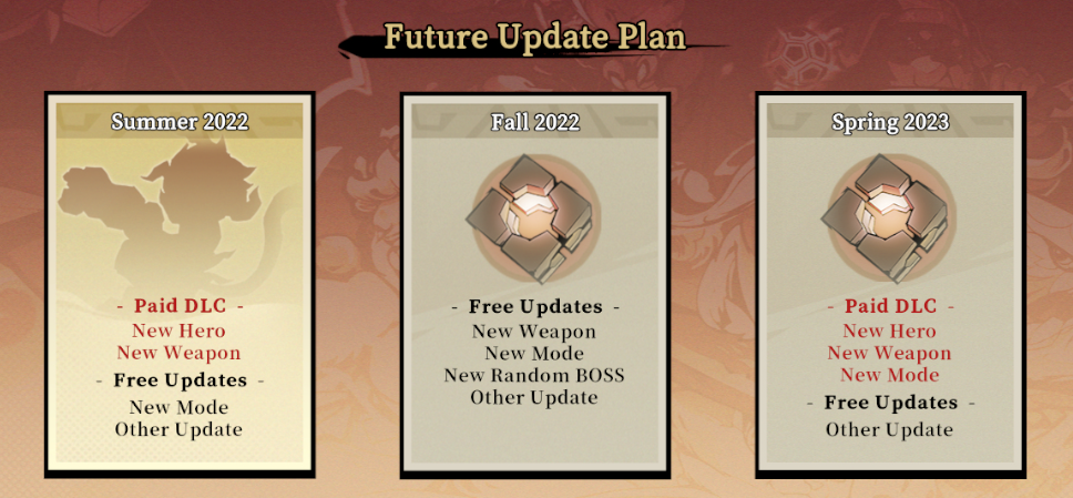 About the upcoming DLC, which will be released in the third quarter this year, we are now preparing new heroes, new weapons and new game mode for you so please stay tuned. The timetable and our plan of upcoming DLCs and free updates will be released Next Week. Thank you all for your patience and support!