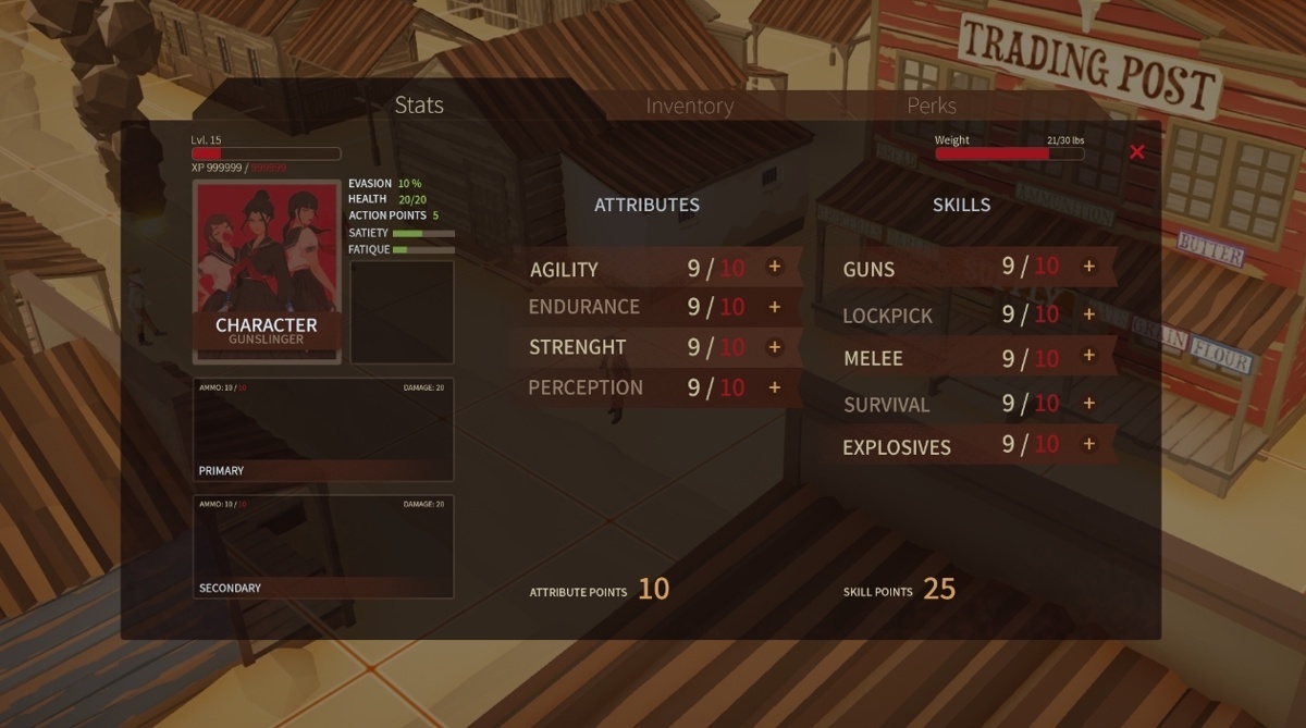 We are still working on elements and buildings on the map. We have already enriched our city with buildings such as the sheriff's post and a bank. saloon, weapon shop and several residential buildings.