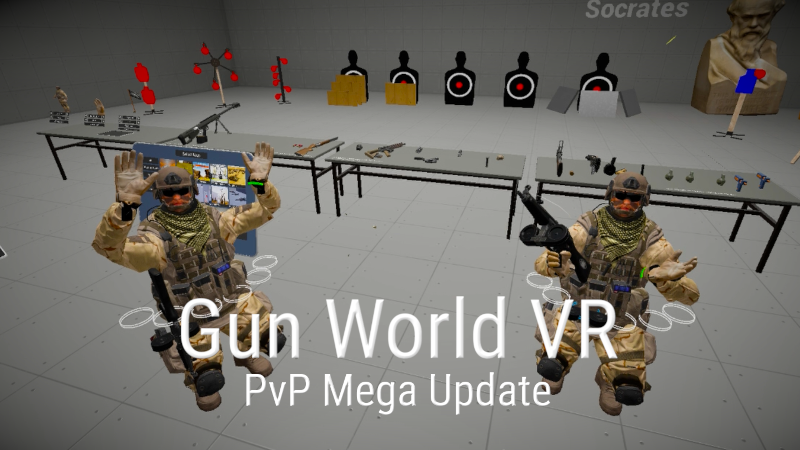 Hey everyone, the PvP Mega Update is now officially out, let's get tactical with each other! We've added 8 new game modes and 3 new PvP maps, all for you to test out your amazing PvP skills and tactics. There is now an official XP and leveling system in Gun World VR, where you can rank up and earn credits. You will soon be able to spend your credits for awesome things in the future, so lets see how many credits you can earn in Gun World VR!