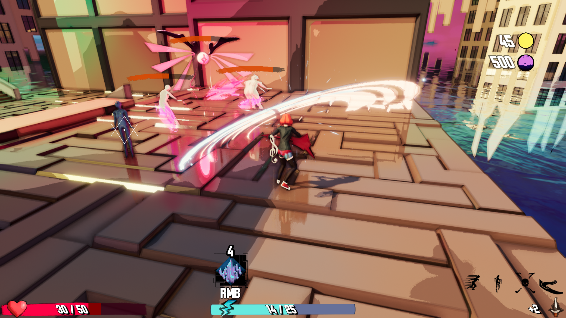 Ability system was once again changed. Now you need a Motivation to cast spells an it's 20 points for every ability. Also now Motivation isn't passively regaining, and instead you need to hit enemies to get any. At the same time, now you don't need motivation to dash, walljump and block.