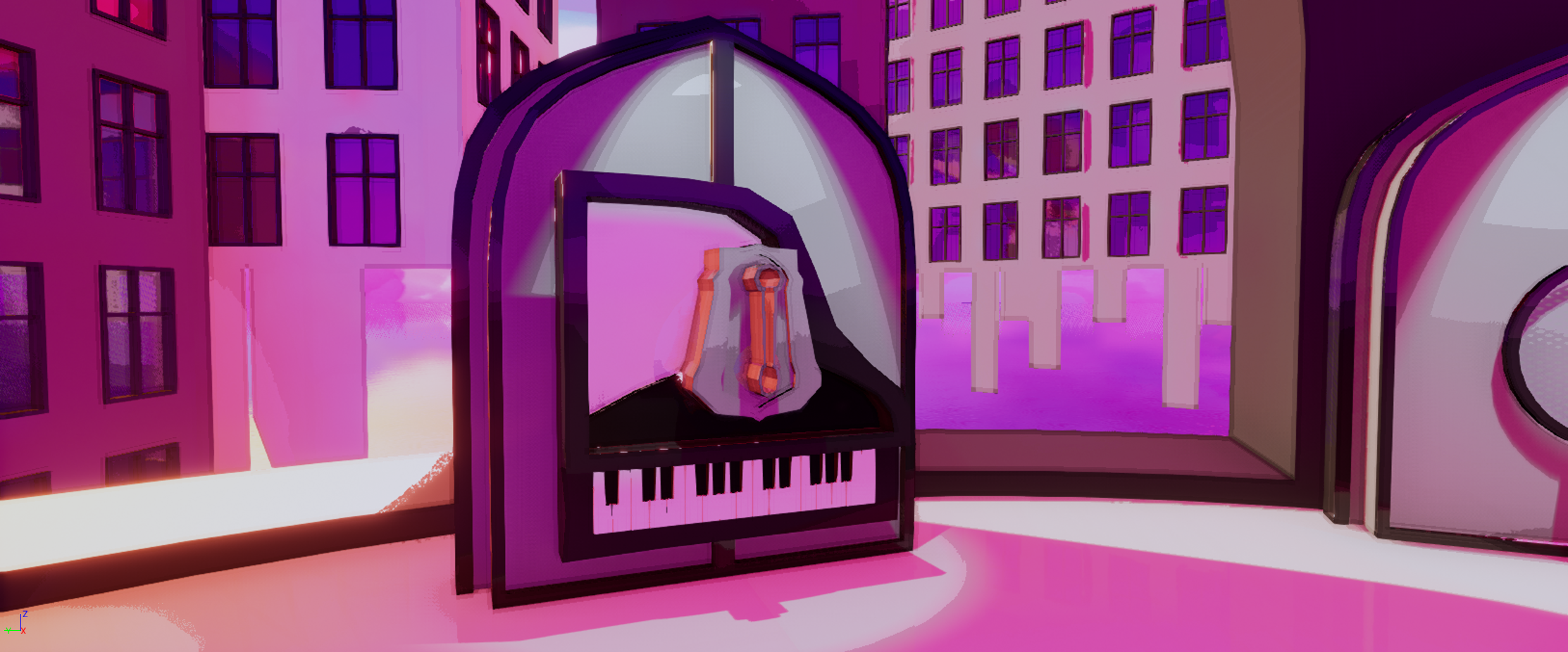 Weapons system - Bosses and minibosses would drop a new weapon that you can take. Right now there is three melee weapons that fully modeled and animated - Sword, Guitar and Scythe and two range weapons - Bow and Blunderbass. Every new weapon would be different in moveset and in stats (Damage, Speed, Reach). Game would motivate to change weapon cause the new weapons would be always better in some stats.