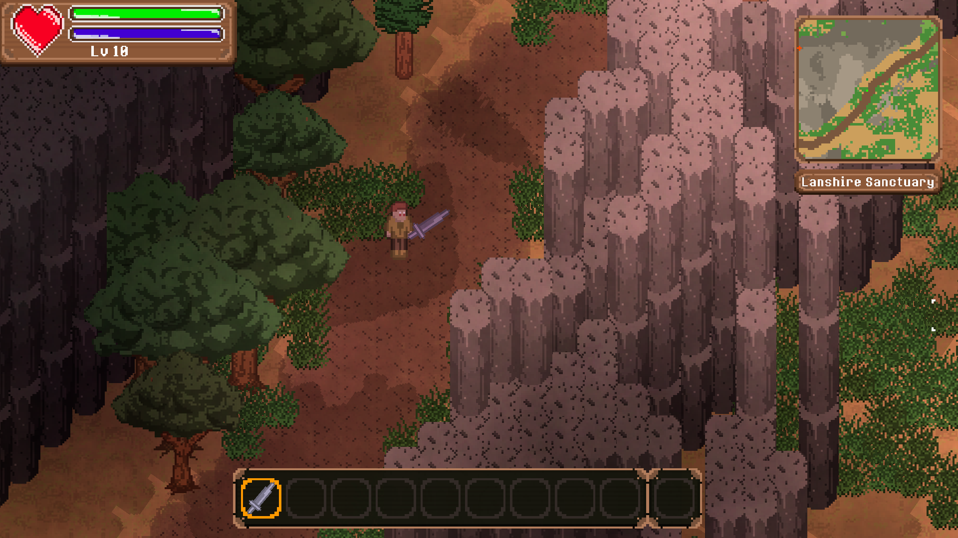 Added: A cancel quest button in the quest menu Added: A new type of quest where a group of enemies spawn in a given area Changed: Now Lanshire Sanctuary has side quests once the main quest line has gotten far enough Changed: Fixed a bug where houses would sometimes get blocked from being accessed Changed: Fixed a bug where house doors would sometime generate on walls incorrectly Changed: the Enchanted Forest biome has now been changed to the Enchanted Woods biome Changed: Fixed bug where quest keeper would sometimes not return reward