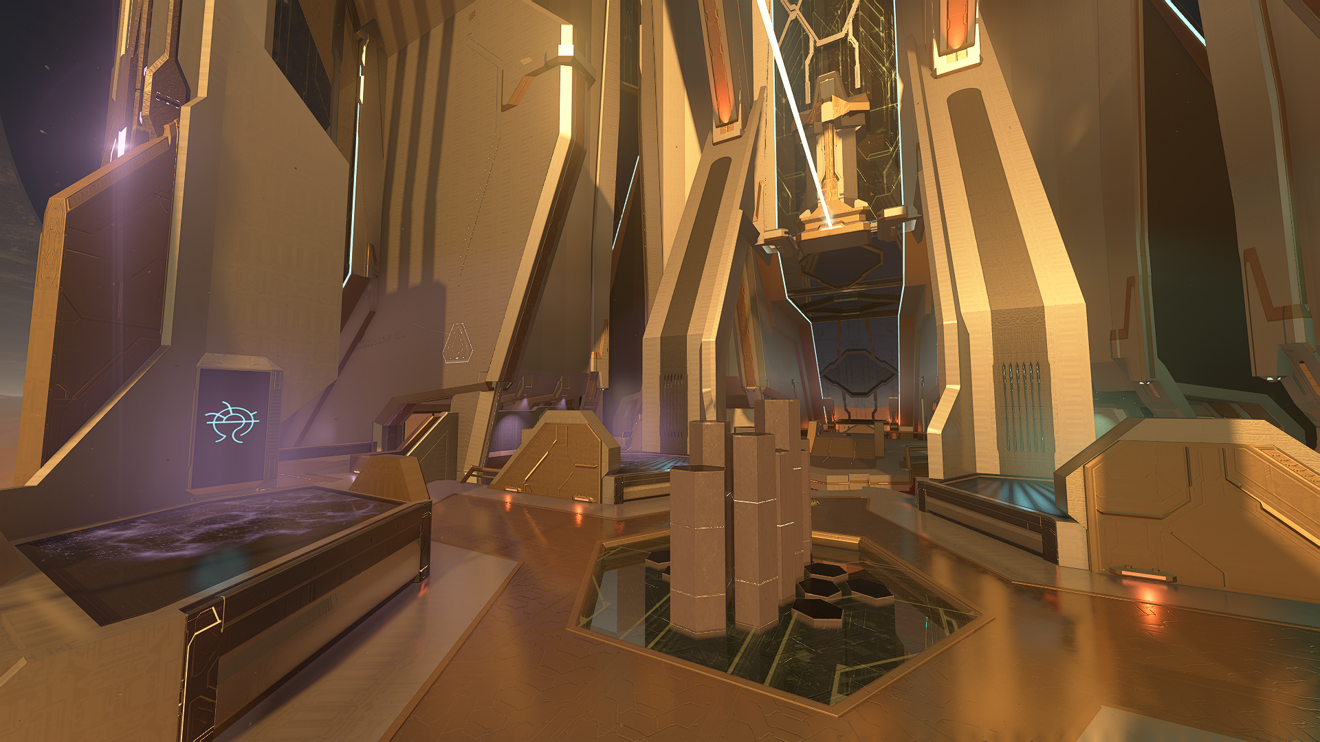 A testament to slayer fundamentals. Set in a suspended platform drilled into the titular planetoid, this map is perfect for those who love spraying shotties around corners, teleporter escapes, and scoring headshots from the open gangways. Try a cozy rendezvous among the stars with teams of two to four.