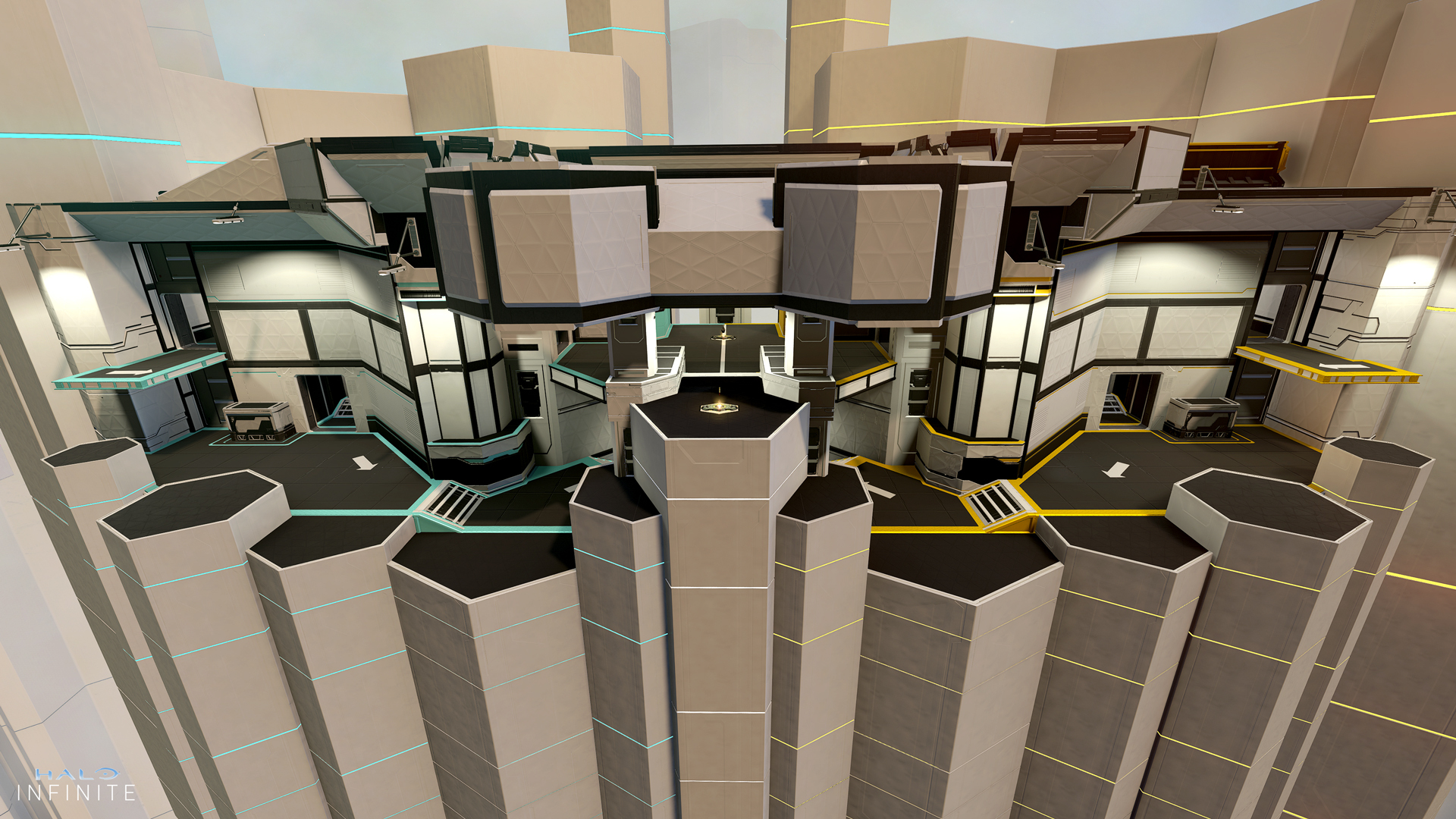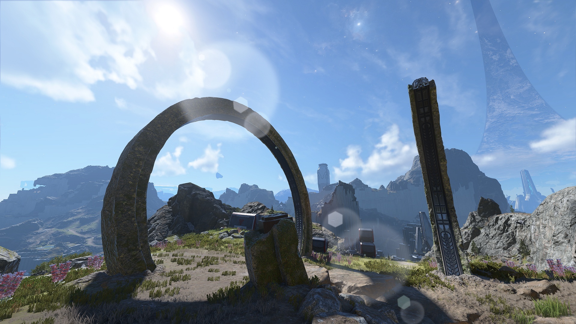 A stack of Forerunner foundation material lay ahead, atop which sat a UNSC forward operating base.