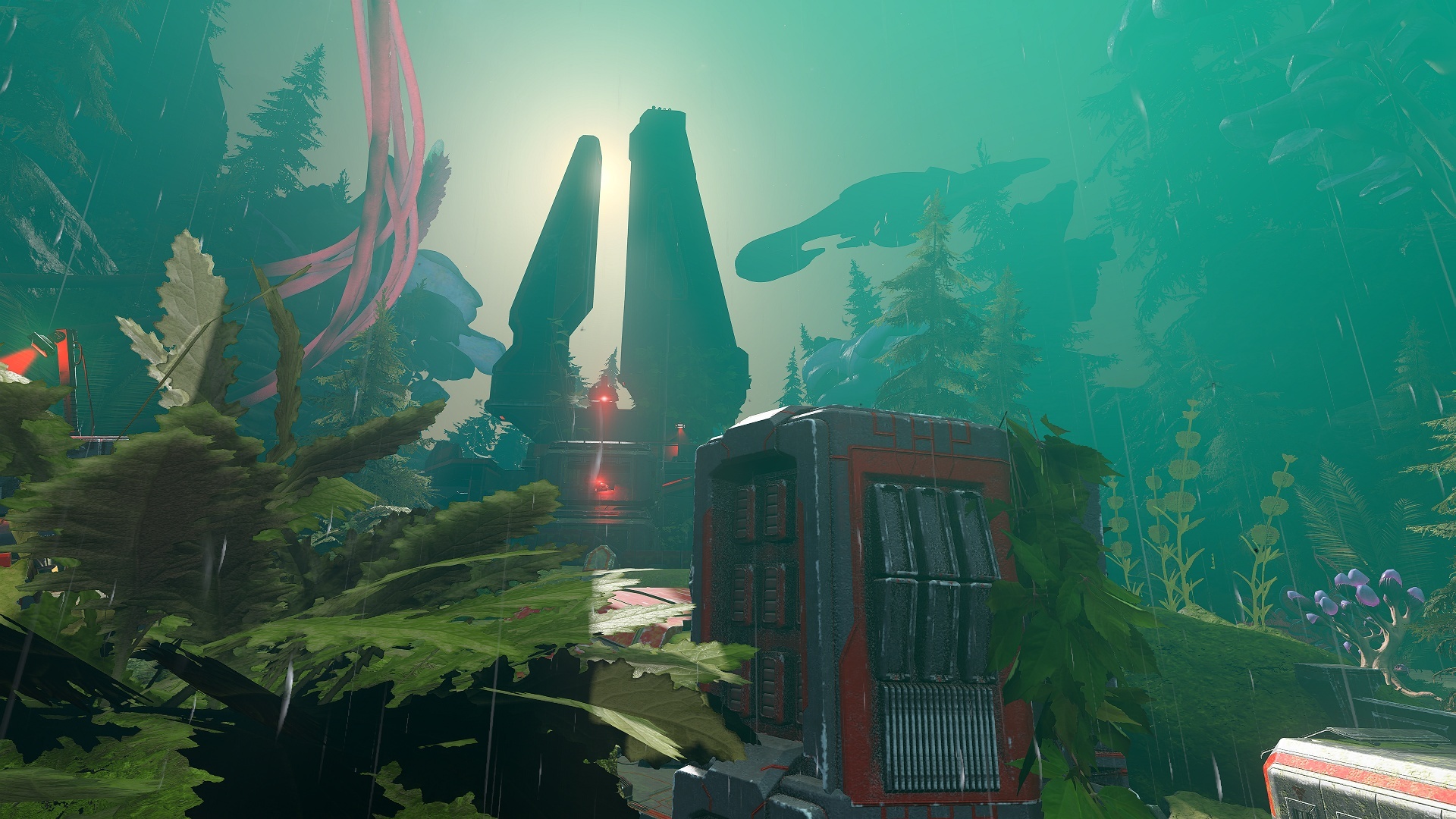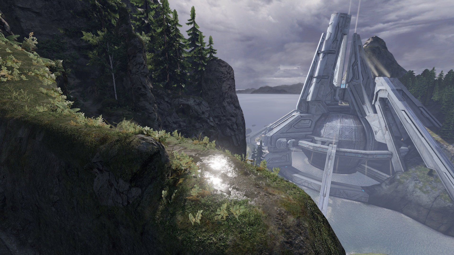 Around us were towering formations of rock covered in lichen and moss. A winding path ahead ascended towards a Forerunner door embedded into the rock, and the path behind curved around to a stretch of cliff overlooking the full majesty of this divine machine—this god-engine that we were blessed to tread upon.