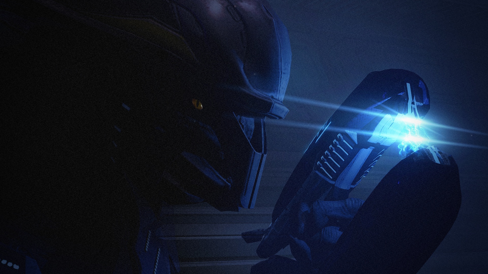 The words, spoken together in quiet prayer, buoyed our grief along to quieter shores. We sat for a while in a verdant clearing that looked out at the chamber of consecration, a great spherical cloister held within the unmistakable angular struts and buttresses that defined much of the Forerunners’ architecture. It sat above a large body of water that stretched off towards the horizon where shafts of golden light pierced through gathering grey clouds.