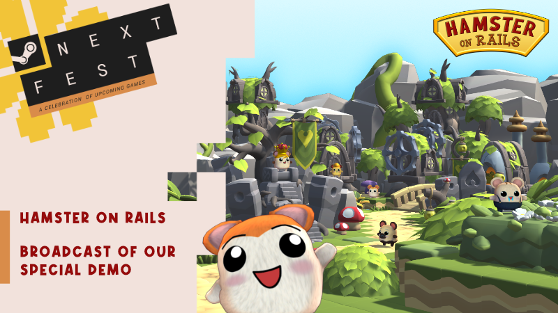 Our game "Hamster on Rails" is participating in the "Steam NEXT FEST", which is a festival to present the DEMOS of games that will be released in the coming months.