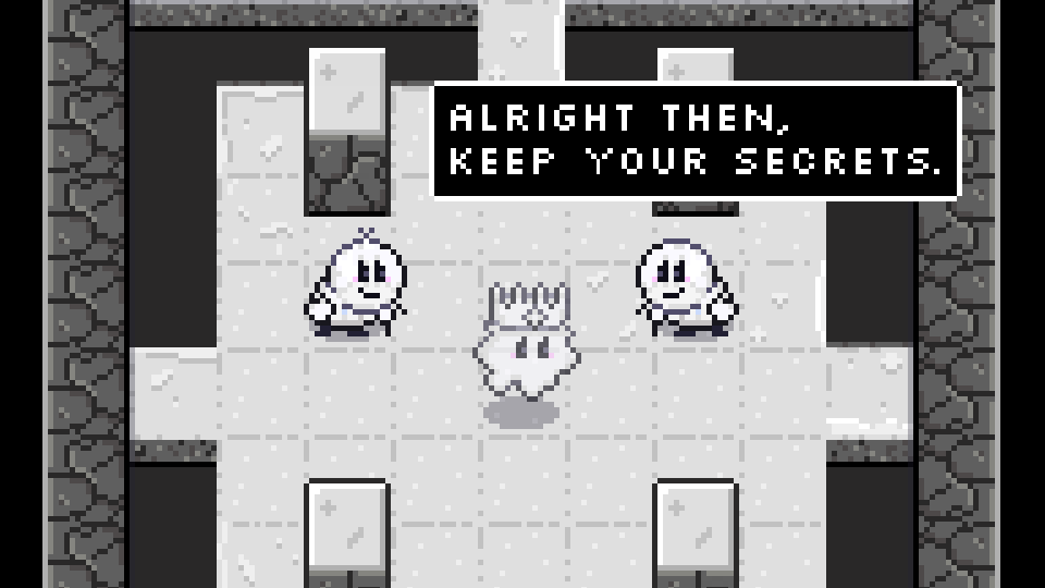 As an homage to the games of the 80s and 90s we grew up playing, Happy Grumps now has some properly buried secrets. Eventually the internet will reveal them all, but for now we have left some hints with The Lost Scholars. These two characters will also grant you mid-level blessings such as extra Dodge, Grit, Turns, or Max Turns. And with new secrets, comes new Trinkets: a Compass for revealing the entire map and a Whistle for warping into unvisited rooms.