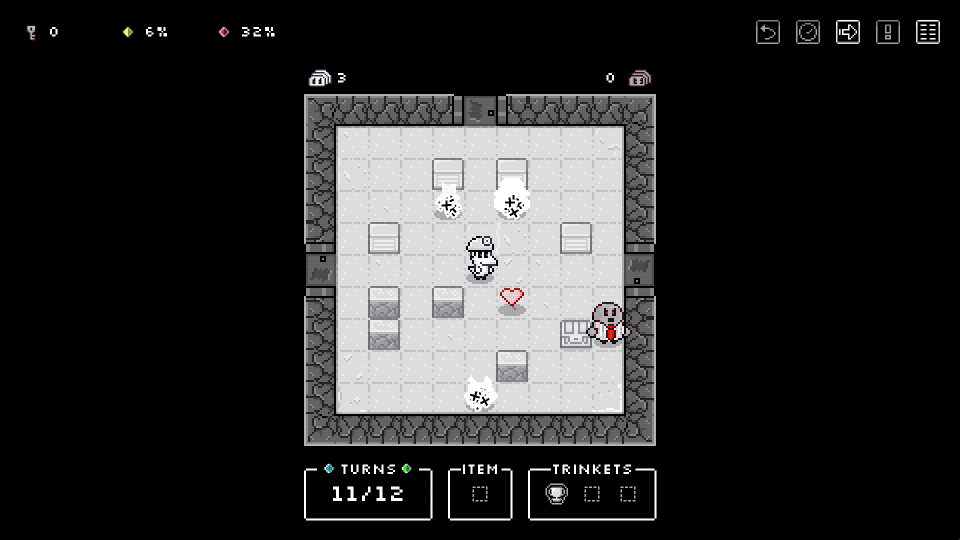 We also sped up the victory screen and our turn tally system to propel you towards you next room faster. We grew up feeding quarters into arcade machines back in the 80s, so as gamedevs we have an ingrained urge for speed :D