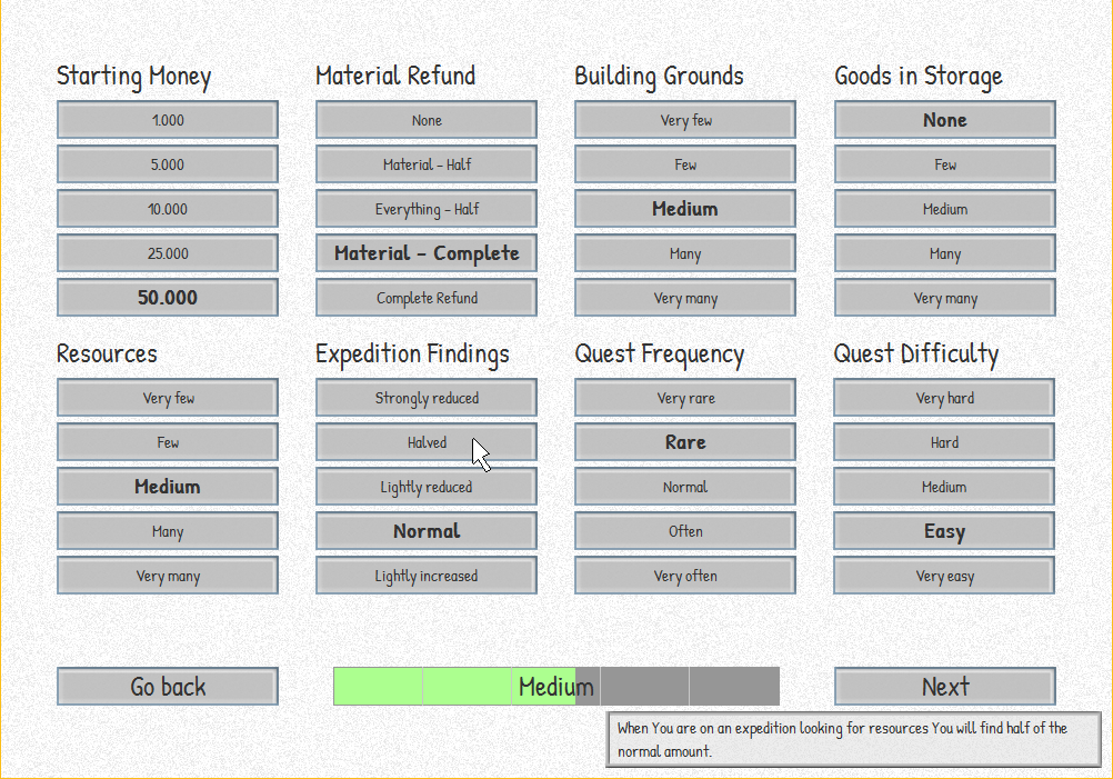 Since making the game publicly visible on Steam I added eight more difficulty settings to the previously six existing ones so You can modify Your experience each time You start a new game.