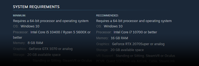 Minimum GPU: GTX 1070.