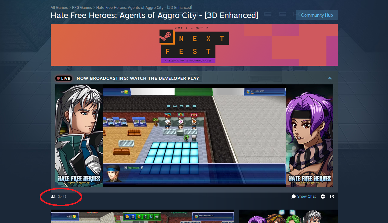 We will be have a live online streaming event with chat for Hate Free Heroes: Agents of Aggro City - [3D Enhanced] on October 4th at 4pm. Join us in the festival and remember to wishlist our game.