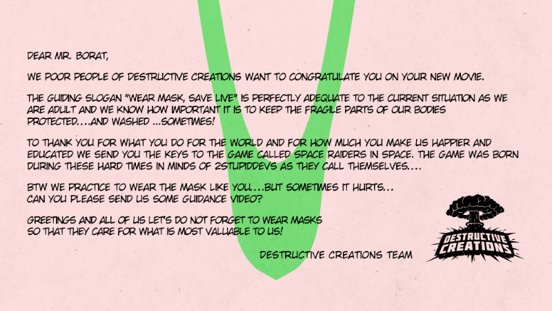 To thank you for what you do for the World and for how much you make us happier and educated we send you the keys to the game called Space Raiders in Space. The game was born during these hard times in minds of 2StupidDevs as they call themselves….