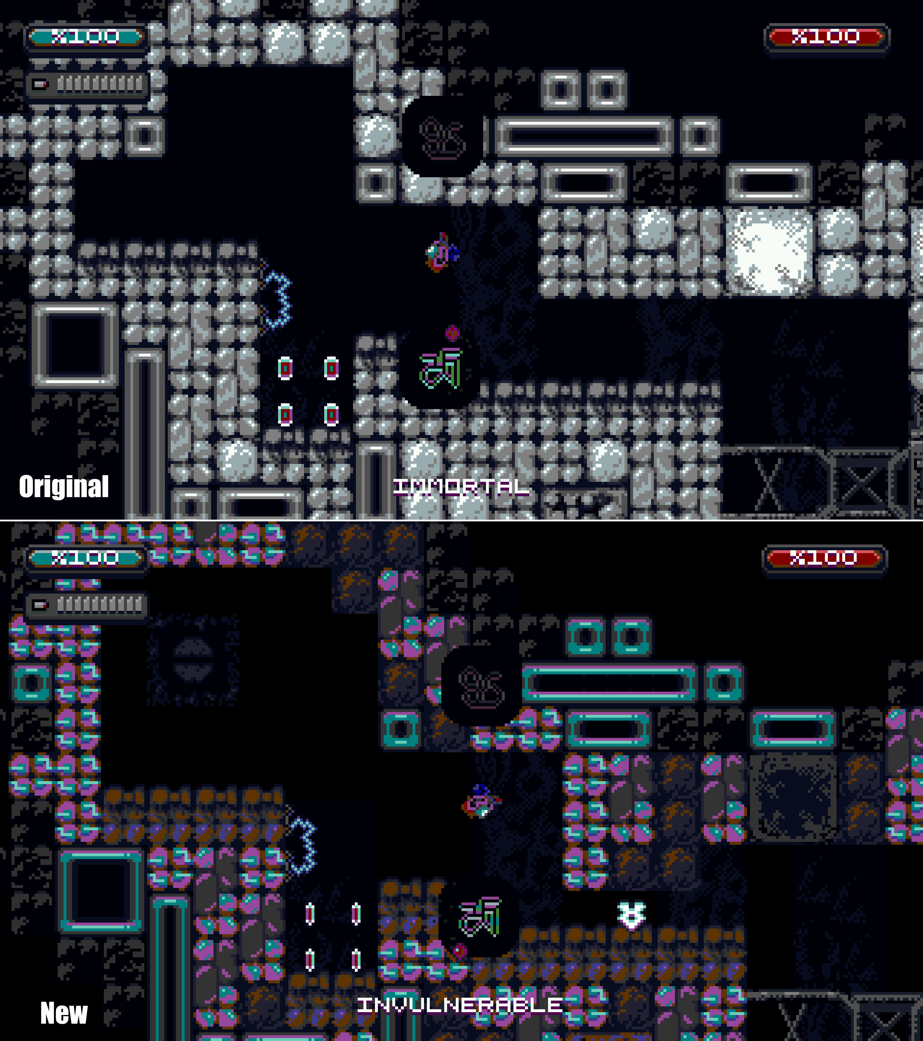 We are mostly done with our new project. The game is about an ancient race called Haxor, such as the game itself. The idea came from a small project that I had started a while back, then Pikor joined and now we are working on it together. At the beginning, the game was based on 8x8 sprites, but after long deliberations, we decided to change it to 16x16 and add even more action to the game.