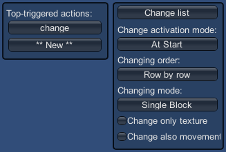 --> Added change action assignable to blocks in the block editor. Change-block will be changed into another. Useful for creating animated blocks or mechanisms that change over time.