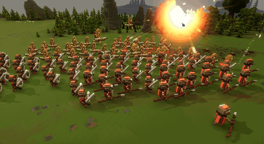 The explosion hits all enemy targets in a certain radius but spares allied units.