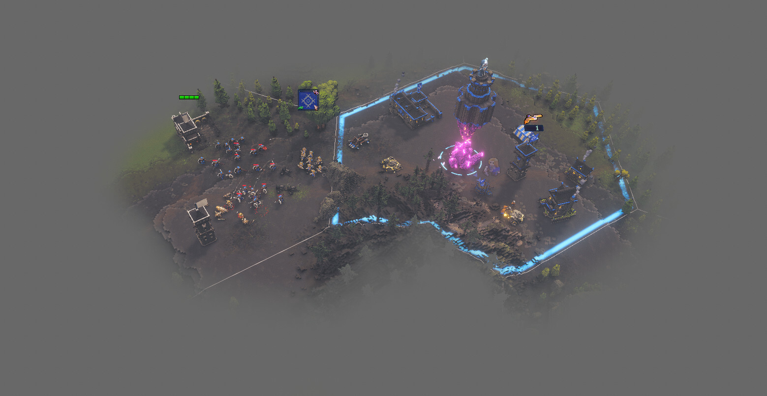 A hex grid system will be introduced. Each hex is a small "base". Multiple "bases" form a territory for each player.
