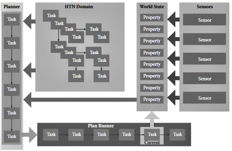 I am using a framework called Fluid Hierarchical Task Network (HTN), which enables tree-like planning structures for complex decisions.