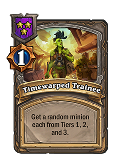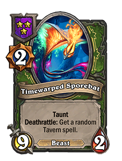- 5/5. Battlecry: Discover a Tavern spell that costs (3) or more from any Tier.