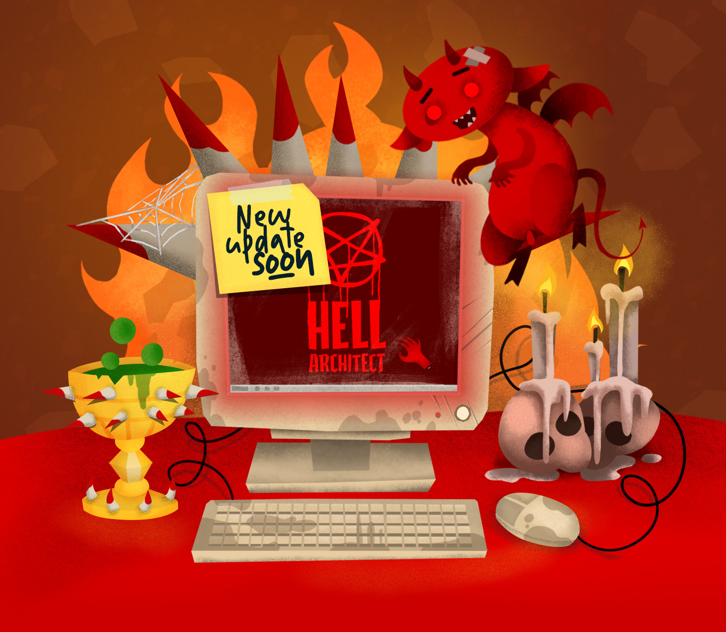 Ok, now a few words about the changes... To speed up the work on Hell Architect, and to make every element of our game flutter like whipped by Lucifer, the team has also been joined by a new Animator who is working on torture machines from Kickstarter, a new Graphic who prepared these beautiful illustrations and a programmer who optimizes the game in terms of the comments you gave us in the feedback. In short: HAPPENING!
