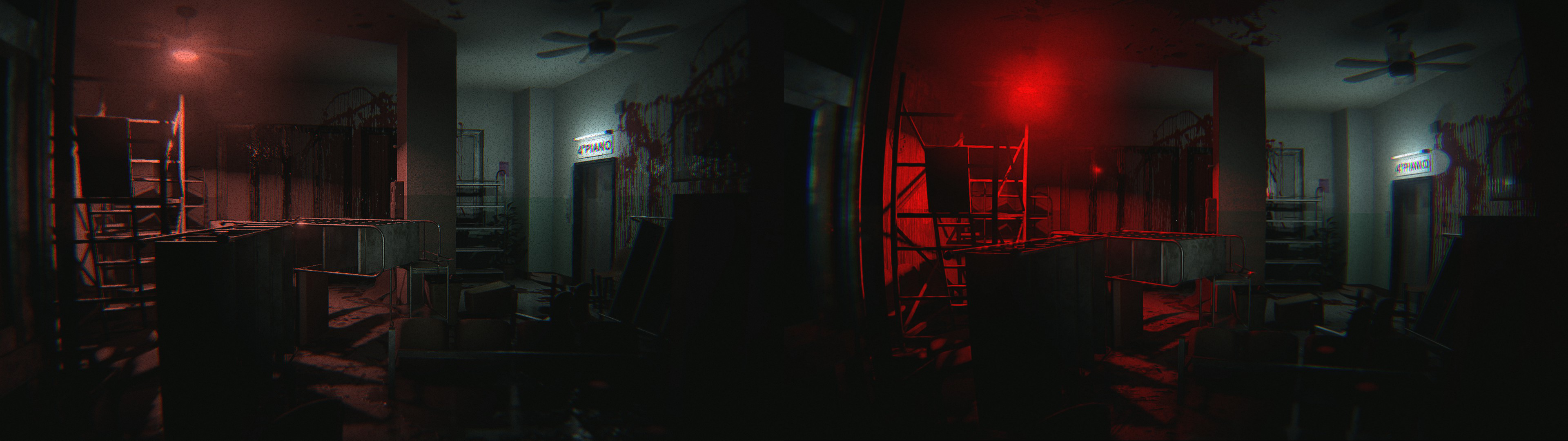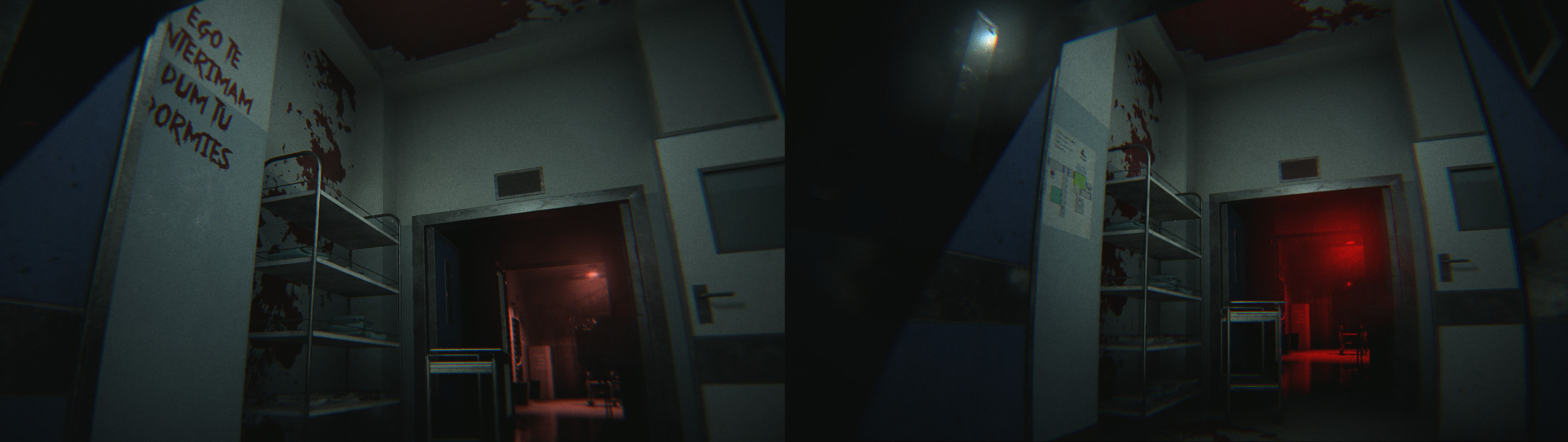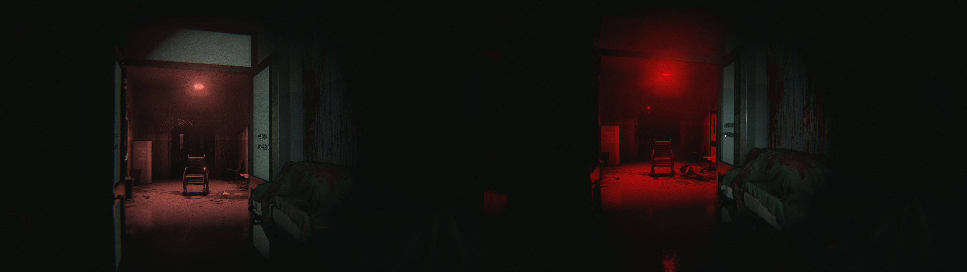 This is especially noticeable in scenes where red is the dominant color. From the moment I conceived the idea of the game, I imagined red in all its power and intensity—a dramatic way to emphasize the color of blood, both figuratively and literally. That pale pink was far from what I envisioned for a horror game.