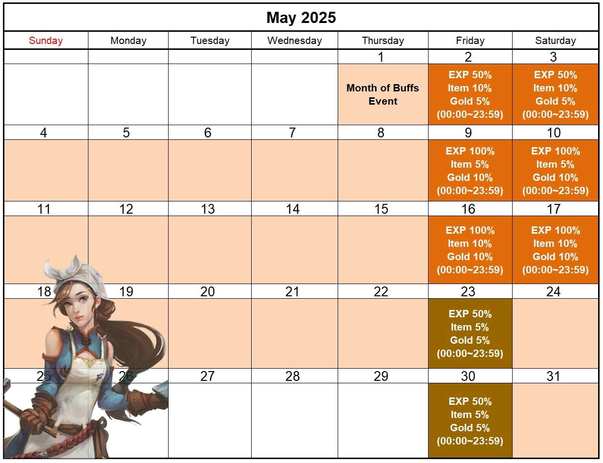 - Weekend EXP Boost Event (Every Friday, May 2025) - Free Aid Giveaway Event (Every Friday, May 2025)