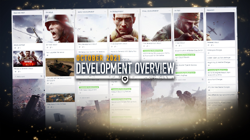 The Development Overview board provides an overview of what projects are currently in development at RETO MOTO, so you as players of Heroes & Generals can see what we are working on.