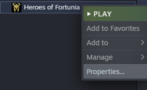 Right-click Heroes of Fortunia in your Steam library and select "Properties"