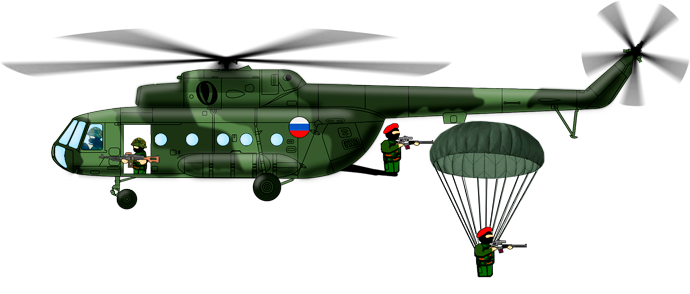 A Mi-8 helicopter with a machine gun on board, special forces are being dropped