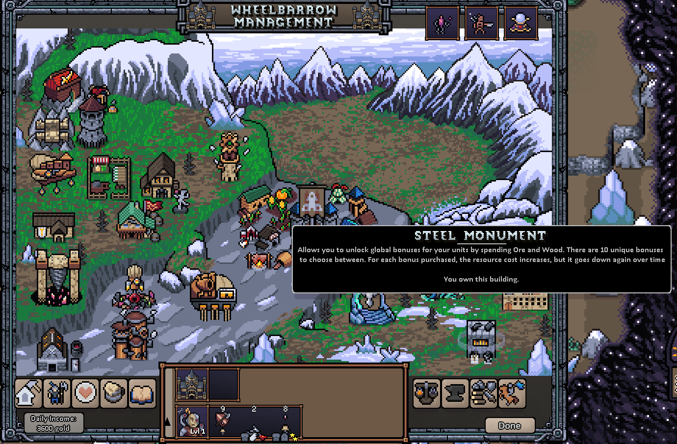 Many UI elements have been updated with new art, making them look and feel better to use. There also various minor improvements, such as being able to close the Level-up window of a hero for later. Dragonking skill has had a rework, which makes it so that you get dragons earlier if you stay at Rank I. Before, the skill was entirely useless unless you put several points into it. Additionally, you can now choose whether you want to get a single large dragon or several smaller dragons when it triggers, and the dragons themselves become larger with higher ranks. There are three new music tracks for the overworld. Unit modding can now use the new modding format, and if you choose to use the new format, new things can be set for the unit, such as whether it can be generated by random effects (making it easier to create technical units for other units’ abilities).