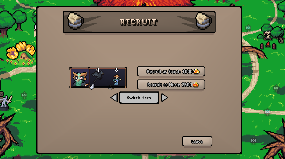 Enabling the player to use the Switch Hero feature to switch between rehiring a dead hero, or recruiting a new hero/scout