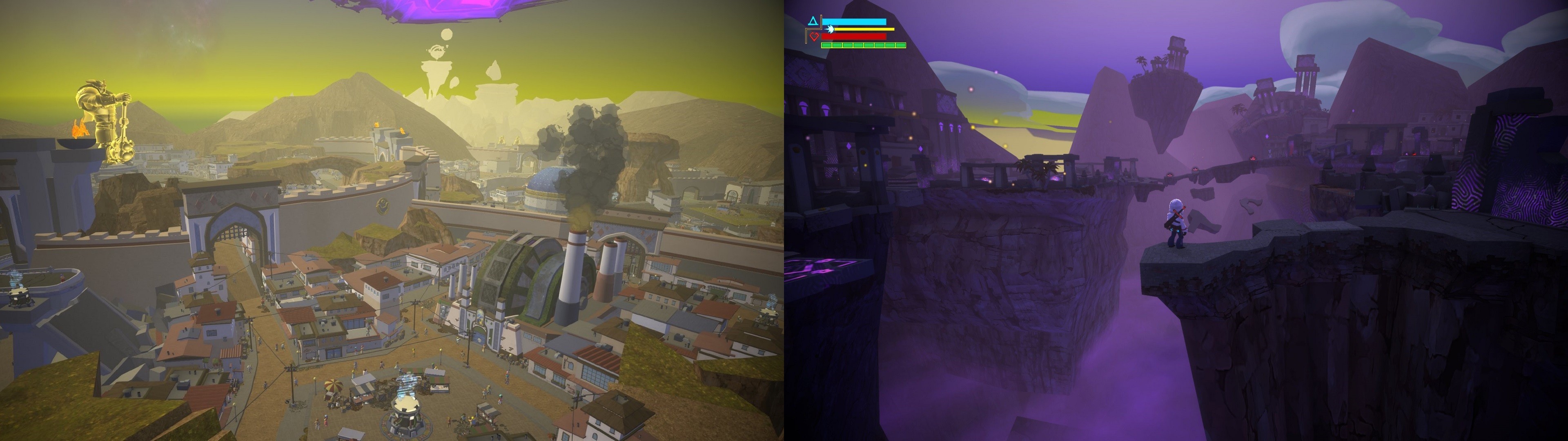 Gibsonia is strategically placed south of Champaner in the Shaapit mountains. When an infected human wants to escape their town, they only need to remember one thing - head south. The fractured landscape of these mountains make Gibsonia a chaotic place. There is only one thing that can act as a landmark - Sinha’s lair. Floating high above his “people”, this levitating island provides a laboratory for the terrifying experiments he runs. This is where the Trishakti was created, a terrible device capable of destroying Champaner.
