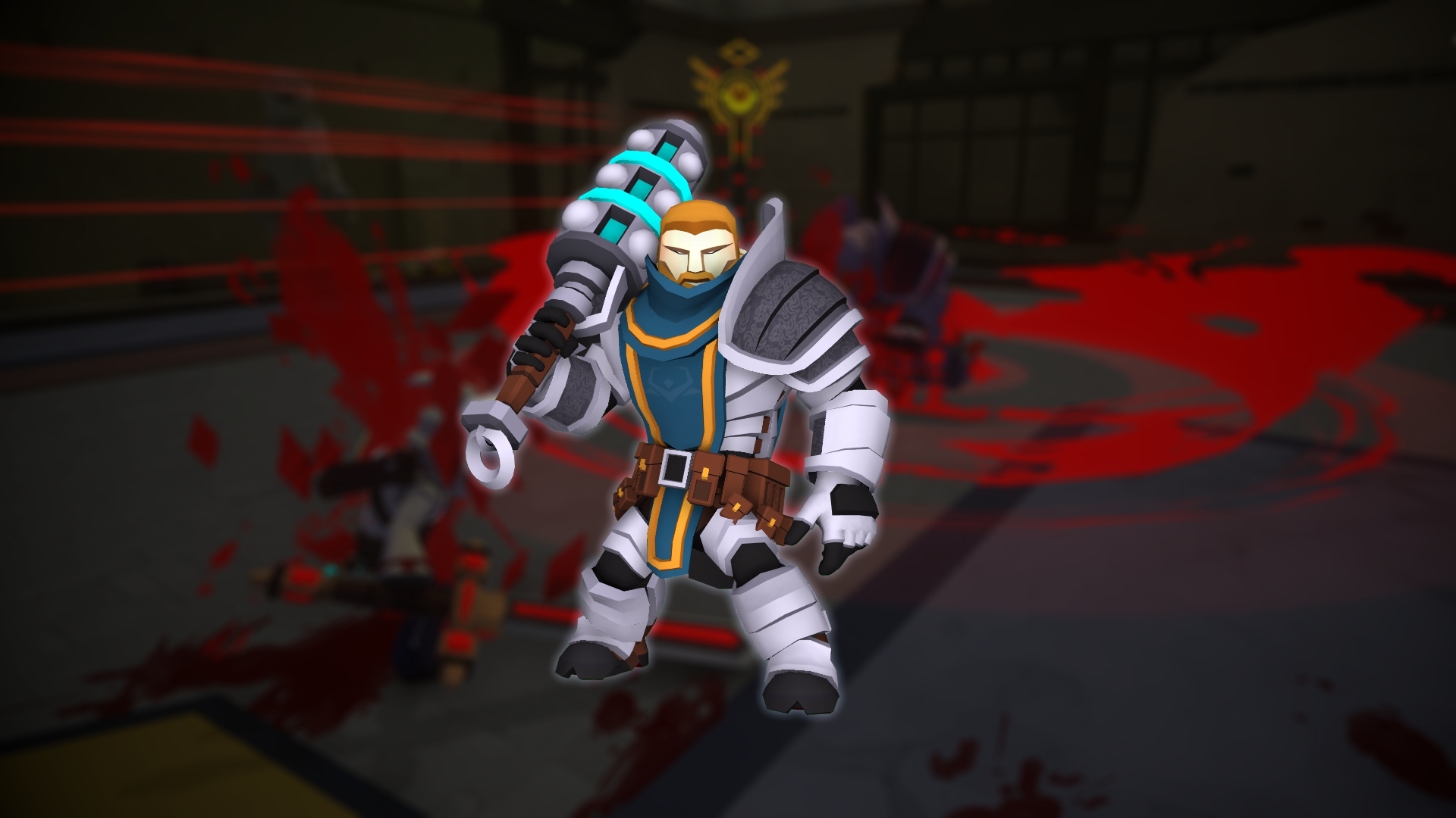 Aurthur is a towering figure. He proudly wears the esteemed Raaja Body Armor, bestowed upon Champaner’s greatest warriors. The banner of Champaner, draped over his broad chest, is emblazoned with the insignia for the Soldiers of Mercy. When wielding his massive stun mace, Aurthur intimidates his foes and inspires his comrades.