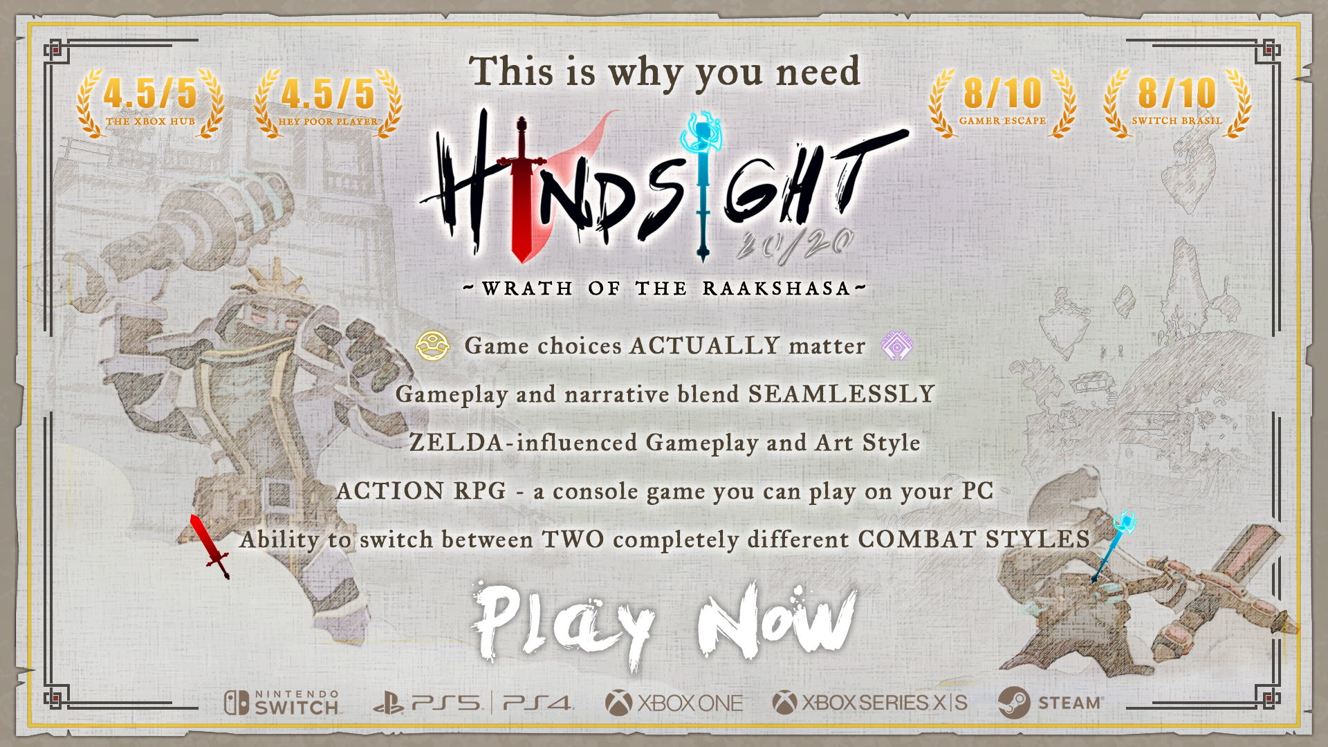 Hey Poor Player - 4.5/5: "Hindsight 20/20: Wrath of The Raakshasa is fantastic, with fun mechanics and a surprisingly great narrative that’ll leave you questioning what you believe in.”