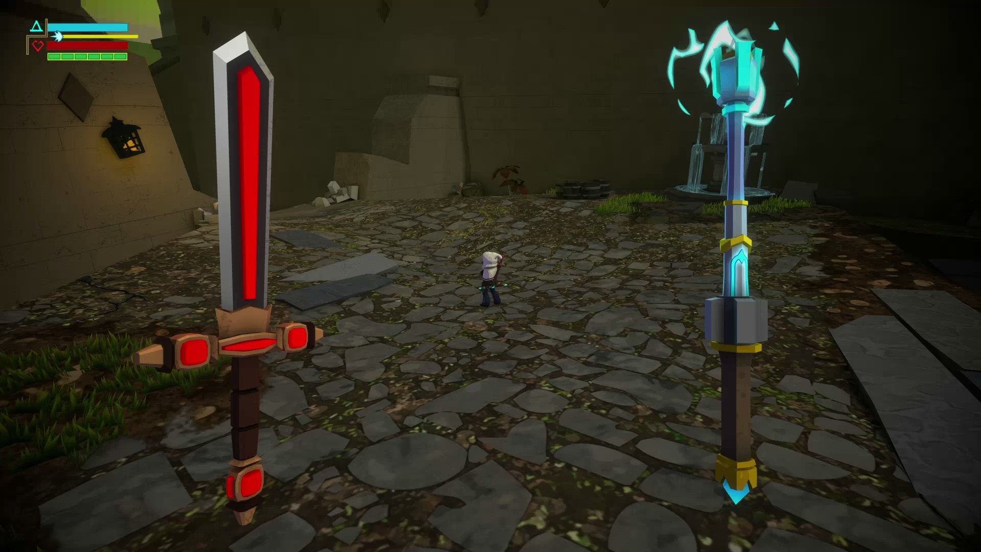 You can switch between the sword and stun baton at any time. How you treat people in this game changes their destinies. It changes your journey and affects the legacy of others and your town.