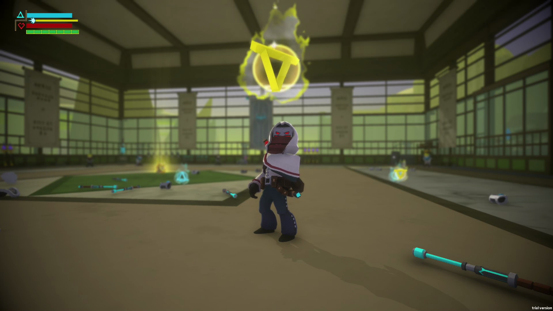Like the baton, the sword still requires combos to defeat your enemies. A single slash with the sword will not be enough. But unlike the baton, you will only need to swing your sword to perform combos. No unique targets required. The third hit in a combo will drain their health. If you are ruthless enough, Jehan will unleash a spinning attack on the sixth hit in a combo. Any enemy nearby will be hurt and spawn pickups.