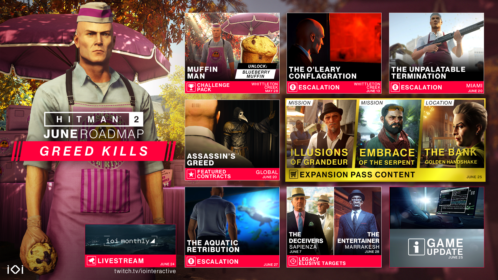 Read about all what's coming in May here: https://www.ioi.dk/hitman-2-may-roadmap/