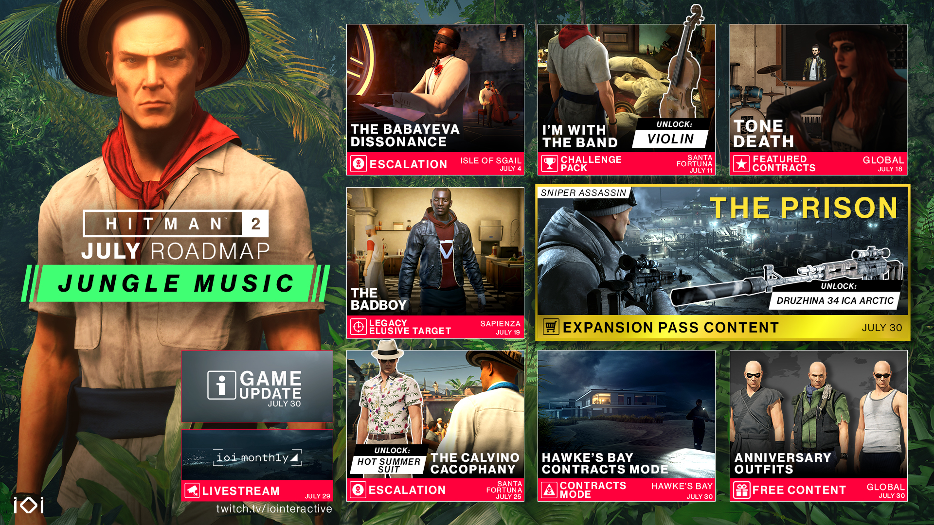 The July Roadmap for HITMAN 2 has arrived with a lot of new content on the horizon for all players!