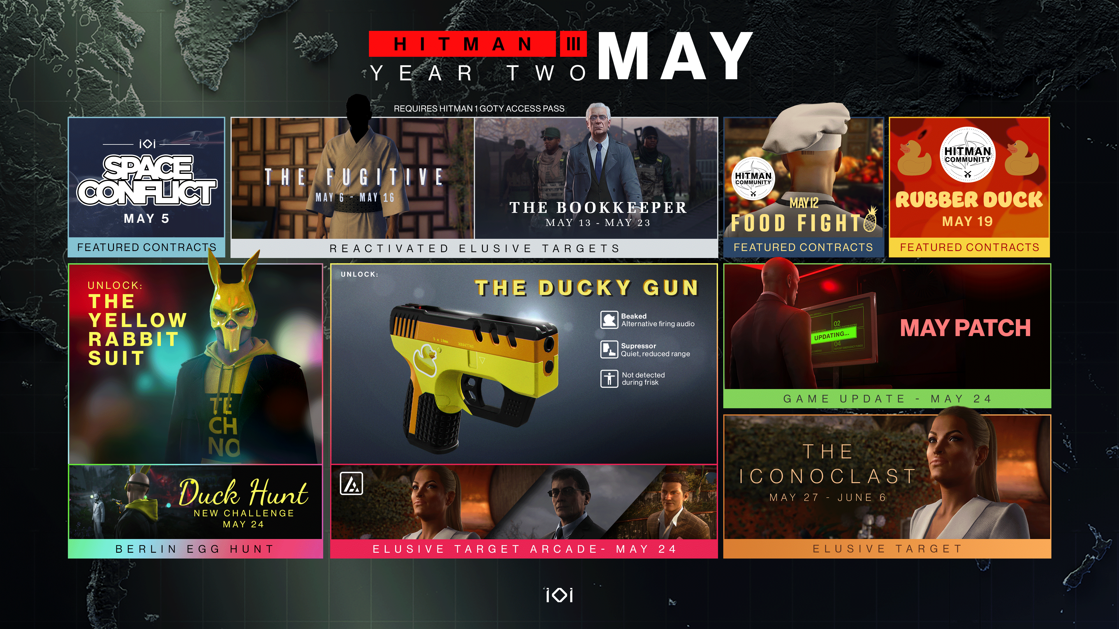 We’ve tried to boil down the complexities and moving parts of our game into a comprehensible post, but you’ll be forgiven for wanting to scroll back up and makes sense of exactly what’s happening and when. To make it a bit easier for you, here’s what HITMAN 3 Year 2 looks like from here on out: