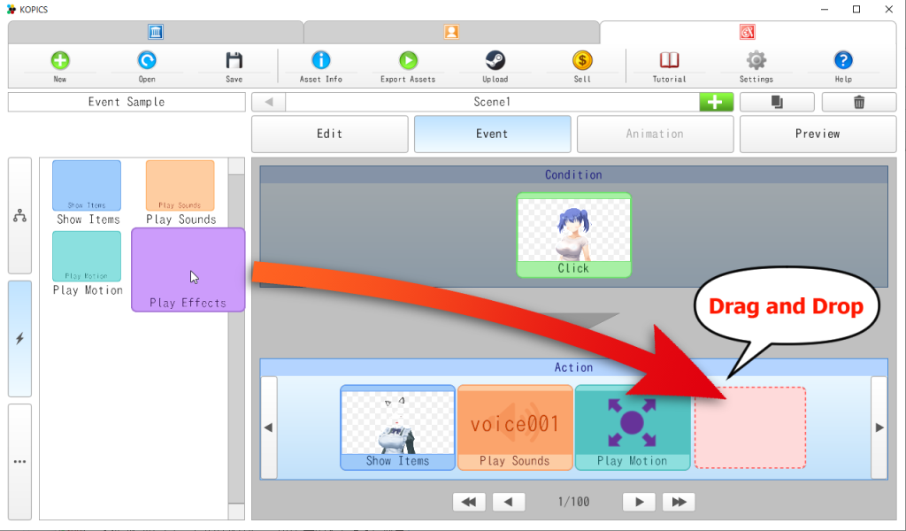 • Implemented event creation feature (integrated Scene Info, Sound, Motion, and Effect).